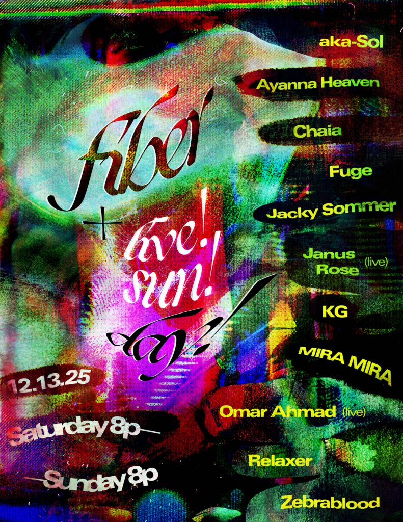 We’re back and partnering with the Live!Sun!Day! crew for maybe the biggest event that the studio has ever hosted. You can think of it as a party if you want, but we’re kind of thinking of it as a 24-hour rave restaurant extravaganza – a celebration of our partnership with the studio (all the love to the party professionals who make the space happen and help at Fiber: KG, Benji, Greg, Hervé, Eli, Allison, Helen, Kartik, Ale, and Uma) – and we got a wild lineup on the way! After this blowout we’ll be taking a break until February 7, so come celebrate with us and say goodbye to a fucked up year.