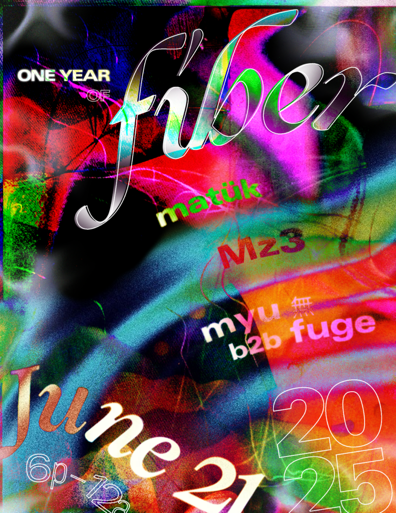 Residents myu 無 and fuge (myuge? f-yu?), the yin and yang of Fiber’s musical universe, will play back to back from the remainder of the night, bringing out all their high energy intercontinental breaks for the occasion, to rock the party until you drop.
